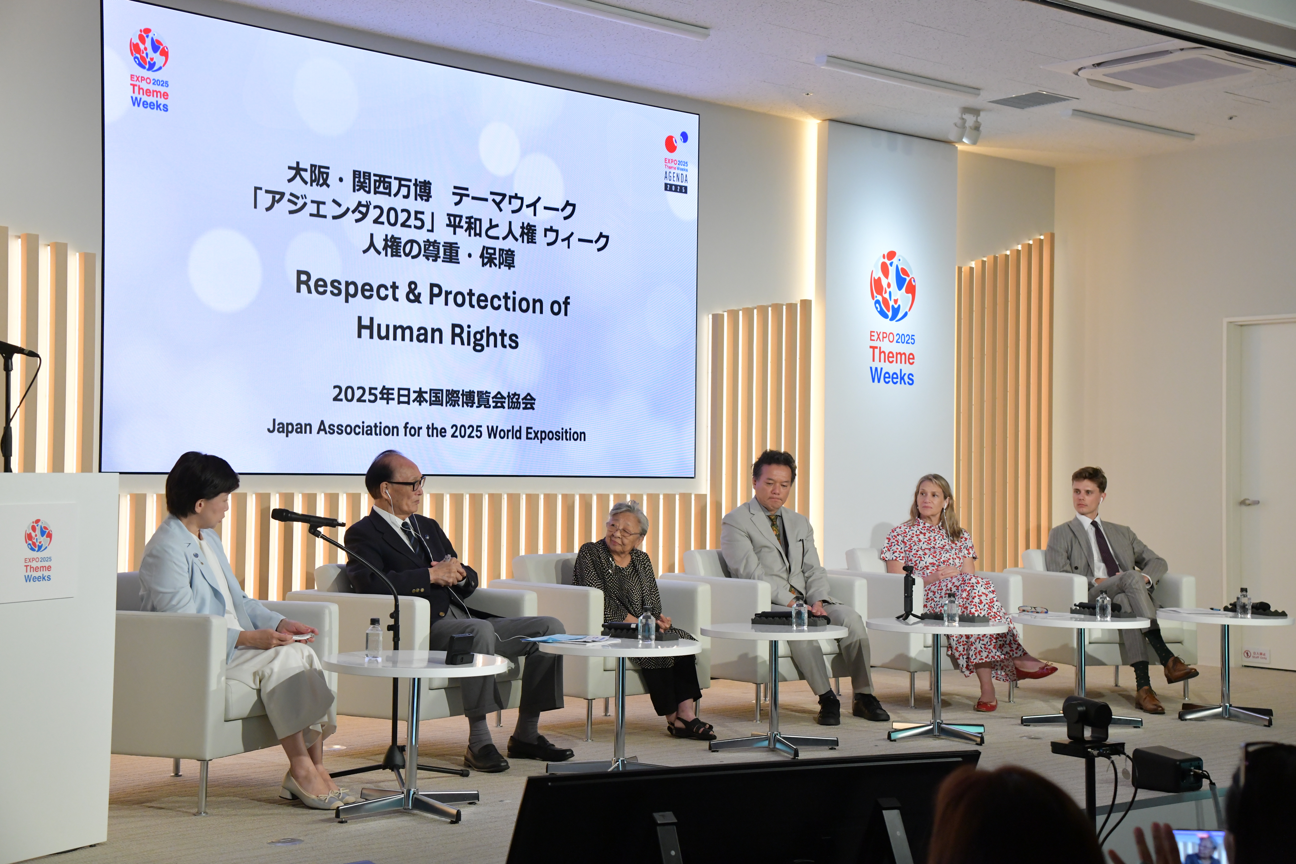 During the discussion, all speakers explored the challenges of respecting and protecting human rights from their respective perspectives, generating a multifaceted exchange. Koko Kondo and Taku Nishimae began by addressing the question of how to transmit the memory of the atomic bombings to future generations. Kondo, drawing on her long career as a storyteller both in Japan and abroad, emphasized that “memory is not merely a past event but the foundation for shaping the future.” Nishimae added that film and visual media possess the unique capacity to touch emotions directly, providing audiences with an opportunity to regard peace as their “own issue.” Both agreed on the crucial role of art and culture as social mechanisms of memory, underscoring the importance of systems that ensure the intergenerational transmission of memory. Cynthia Veliko and Ilwad Elman, meanwhile, focused on the issue of human rights violations and the collapse of trust in the context of modern conflicts. Veliko noted that distrust in institutions and governance perpetuates cycles of violence, while the participation of civil society and youth is indispensable for restoring trust. Elman, drawing from her experiences in Somalia, introduced examples of reintegrating former child soldiers and empowering women within local communities. Both emphasized that “rebuilding trust” constitutes the foundation of peace, and agreed that the international community must support such grassroots efforts. Expanding the discussion, Ulysse Richard addressed the implications of technological progress for human rights and security. He warned that concerns regarding AI and autonomous weapons are not abstract fears of the future but urgent issues already confronting humanity. He stressed the pressing need for international regulation and ethical frameworks to address these challenges. Responding to these contributions, Izumi Nakamitsu summarized by reaffirming the interconnection of three key pillars: peace, human security, and human dignity. She emphasized that the realization of respect for human rights requires three essential elements—memory, trust, and dialogue. All participants concurred that respect for human rights cannot be left solely to states or international organizations, but is a task that must be implemented in the daily lives of individual citizens. Taken as a whole, the program served as a bridge between past and present, presenting a pathway toward the respect for human rights with an outlook toward the future.