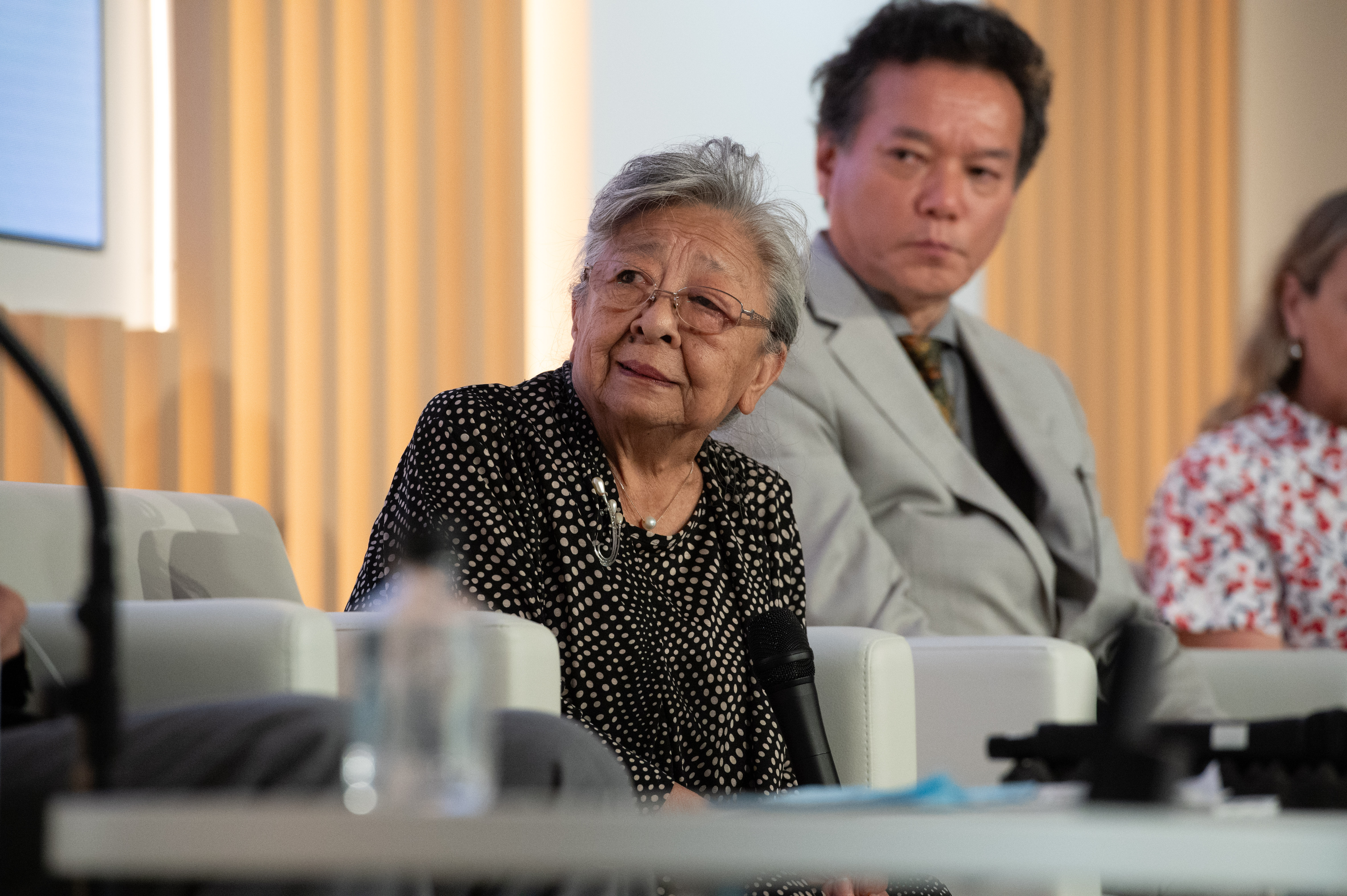 Koko Kondo began by recounting her experience as a hibakusha, having been exposed to the atomic bombing in Hiroshima at the age of eight months. From this starting point, she reflected on her lifelong journey as a “storyteller of peace.” Her father, Reverend Kiyoshi Tanimoto, devoted himself in the aftermath of the bombing to supporting orphans and young female survivors. Growing up under his example, Kondo became deeply aware of the importance of bearing witness. At the age of 40, she listened to her father’s final sermon, in which he expressed regret that he had not been able to respond to the cries of many. This moment made her recognize her own mission to carry forward his work. Kondo also shared how, as a child, she once harbored deep hatred toward the crew of the Enola Gay. However, when she later met them in person and saw their tears, she realized that perpetrators too are human beings. This encounter gave her a new perspective of reconciliation and coexistence. She highlighted the significance of conveying memories through art and film, discussing her involvement in the production of the movie What Divides Us. “To continually question the meaning of memory,” she asserted, “is central to peace-building.” For Kondo, the path toward the “restoration of human dignity,” beyond the dichotomy of victim and perpetrator, has been the guiding trajectory of her life. Kondo has also been deeply engaged in educational testimony both in Japan and abroad. When addressing younger generations, she deliberately goes beyond recounting tragic experiences. Instead, she poses the question: “How would you live?”—encouraging listeners to see themselves as participants in peace-building. She recalled that many students responded with tears and shared their determination to find their own ways to act. Through collaboration with artists, Kondo has also brought her testimony to international audiences. By incorporating her experiences into film and stage productions, she has sought to communicate the message that “memory is a gift to the future.” In this way, her testimony has transcended mere victimhood and become a cultural and educational legacy for future generations. Concluding her remarks, she emphasized: “The wish for peace exists within everyone. What matters is translating that wish into action.” Her words resonated deeply with the audience, inspiring both empathy and resolve.