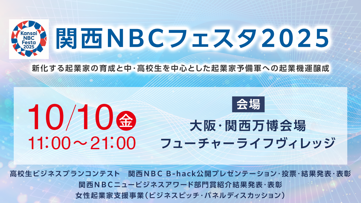 Therefore, in 2025, the 35th anniversary of Kansai NBC, we will hold a commemorative event at the Osaka Kansai Expo site, "Nurturing innovative entrepreneurs and fostering entrepreneurial momentum among junior and senior high school students (name: Kansai NBC Commemorative Event "Kansai NBC Festa")". In addition, by holding the event at the "TEAM EXPO Pavilion" during the theme week "SDGs + Beyond", we aim to further revitalize the Kansai economy.