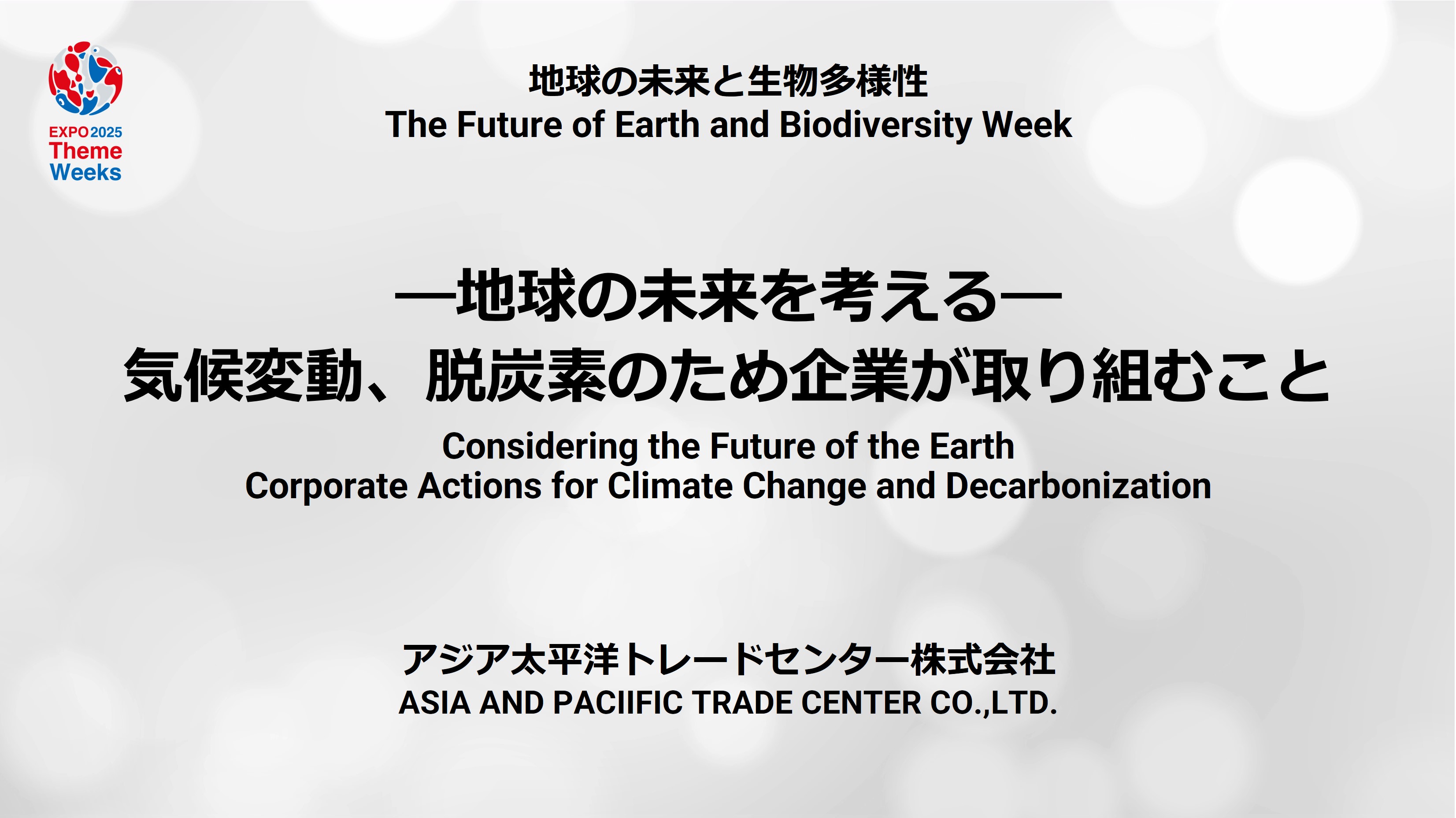 We will invite five to six companies, including companies participating in Eco Plaza, co-creation challenge registrants from overseas, and speakers at the TEAM EXPO 2025 Nature and Environment themed sessions that have been held regularly, to give presentations on climate change and decarbonization efforts, and to communicate these to visitors at the venue and online participants, creating opportunities for new solutions.