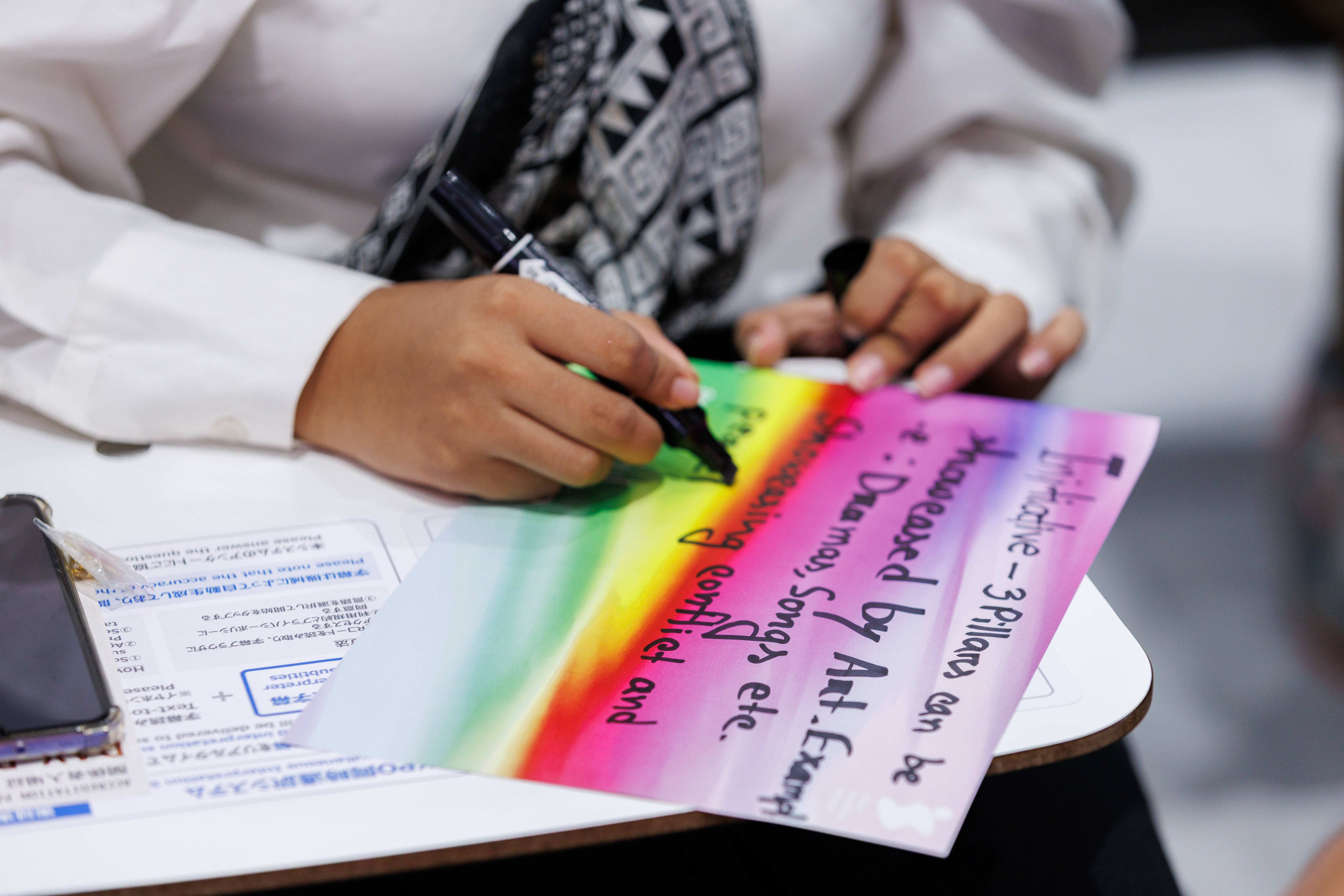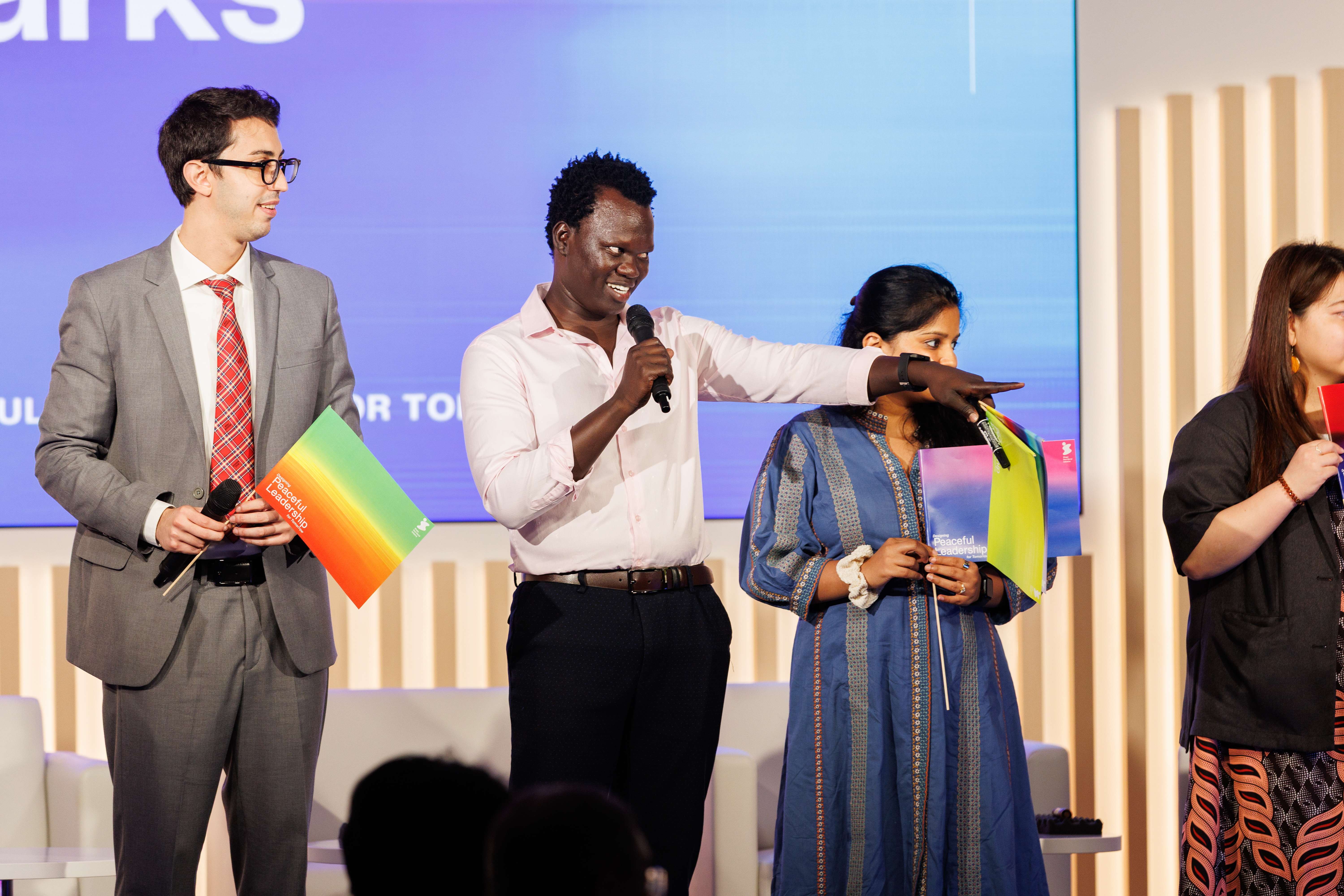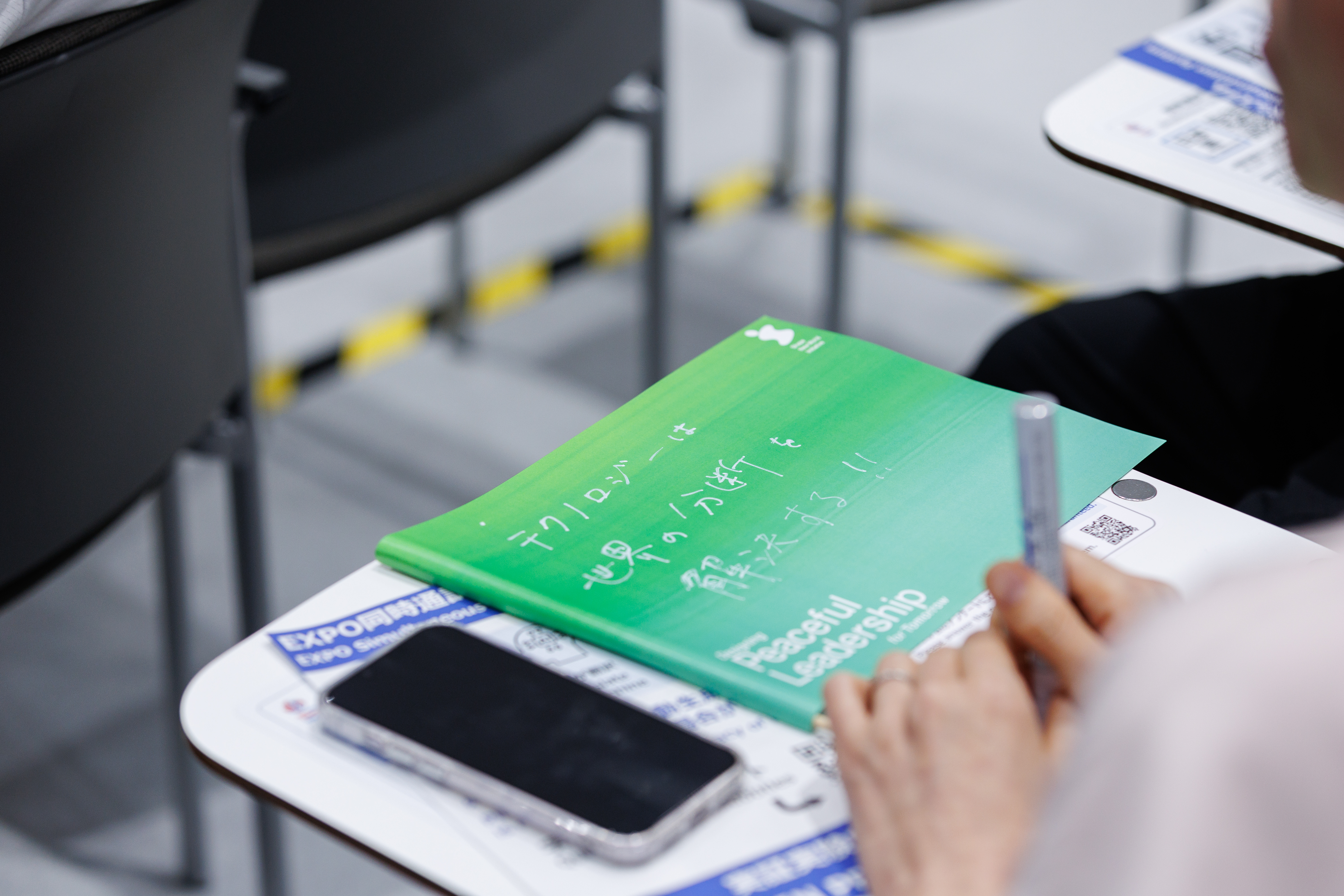 The second half featured a participatory workshop built around the question, “What kind of peaceful leadership do you want to declare and embody?” Participants reflected on their own understanding of peace and shared moments when they felt most aligned with it. From these discussions, various action pledges emerged, such as “using technology to eliminate division,” “choosing to trust others first,” and “creating more spaces for dialogue.”