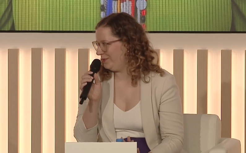 Laura Curau introduced the strengths of her country's direct democracy system. She then illustrated the environmental and human rights impacts Swiss companies have overseas, advocating for the need to legally ensure corporate responsibility across borders. She envisioned a 2050 society where companies respect human rights and the environment throughout their entire supply chains, and where citizens can make informed decisions based on access to information.