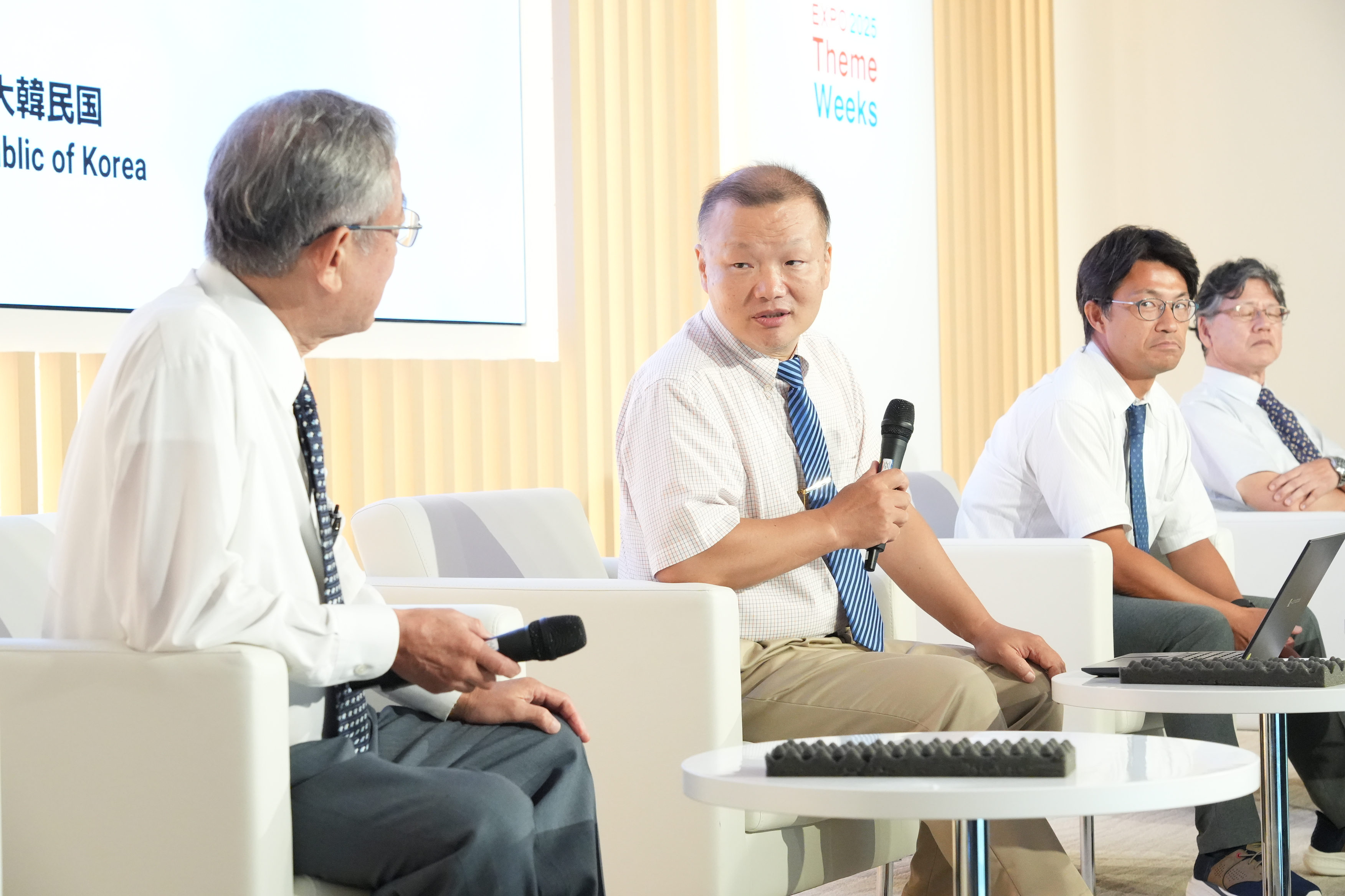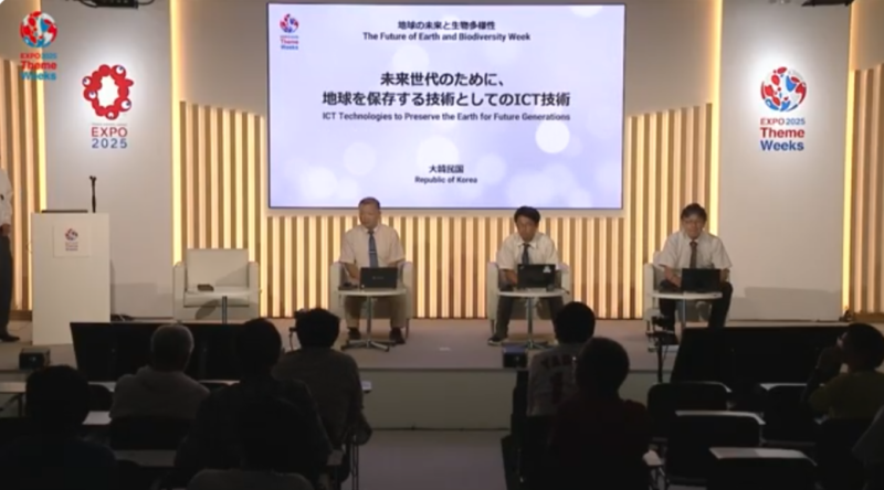 A session entitled ‘ICT Technology as a Means to Preserve the Earth for Future Generations’ was held at the Theme Week Studio of the Osaka-Kansai Expo 2025. This session, featuring ICT experts as speakers, explored the potential of ICT technology as indispensable for preserving the global environment and realising a better society for future generations. Hosted by the Korea Pavilion and the Japan Branch of the Korea Institute of Communications and Electronics (KICS), the session featured presentations and a panel discussion with four ICT experts. It emphasised that utilising ICT technology is crucial for passing on a planet rich in diverse life to future generations and for continuously realising a better world than we have today. Furthermore, fundamental approaches for advancing closer Japan-Korea cooperation in the future were introduced.