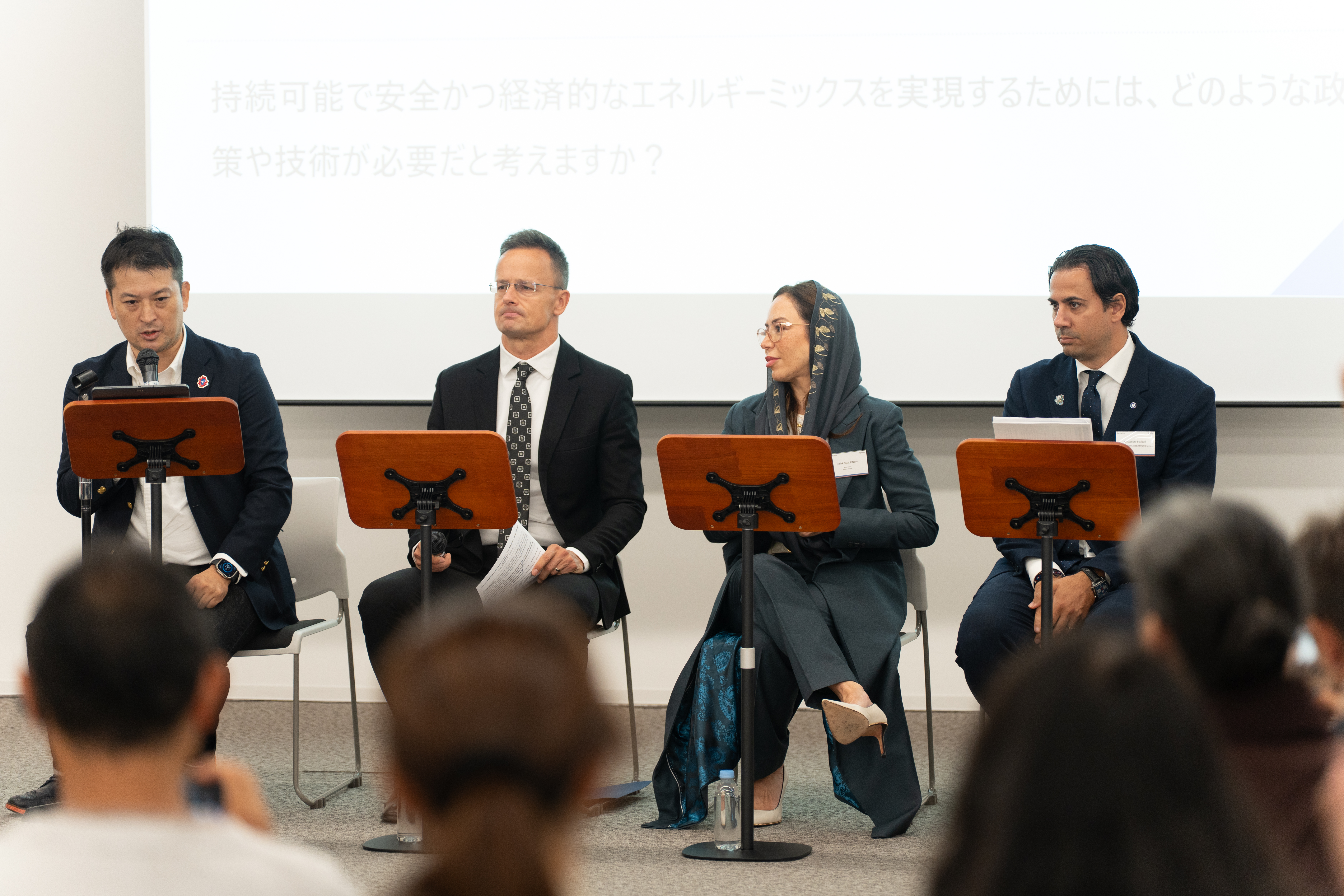 This session, themed “The Future of Earth (Energy),” discussed how to harmonize three key elements of energy policy: stable supply, economic efficiency, and environmental conservation. With rising electricity demand driven by the spread of electric vehicles and artificial intelligence, participants presented their respective national policy approaches and directions for technological innovation. The session featured Mr. Péter Szijjártó from Hungary, Ms. Malak Talal AlNory from Saudi Arabia, and Mr. Alessandro Bevitori from San Marino, who introduced their national strategies, including a stable supply model centered on nuclear power, a circular carbon economy, and the introduction of regionally distributed renewable energy systems. The discussion highlighted the importance of diversifying the energy mix, managing electricity demand in the AI era, and pursuing comprehensive decarbonization that includes materials production. The speakers emphasized that energy policy is not merely a supply issue but a foundation that supports the sustainability and resilience of society as a whole.