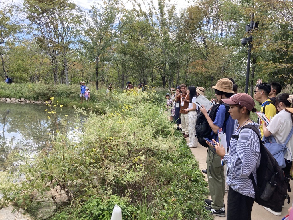 In the second half, the group moved to MUIC KANSAI for a talk session with professors and pavilion directors. Associate Professor Yuya Fukano from Chiba University’s Graduate School of Horticulture commented, “Renewable energy facilities and natural environments are often seen as being in conflict, but we should engage in calm discussions and seek a trade-on relationship where both can coexist.” Mr. Kutsuna added, “Without struggle, neither nature nor energy will change,” emphasizing the importance of embracing transformation.