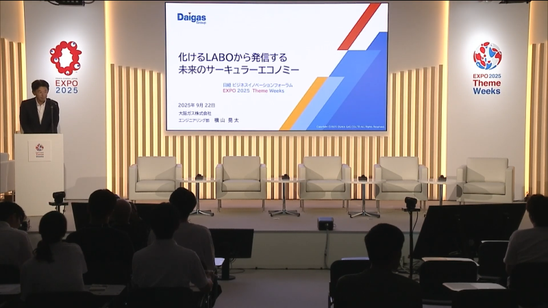 This forum will focus on the methanation demonstration being carried out at the Expo site during the theme week of Expo 2025 Osaka Kansai, "The Future of Earth and Biodiversity Week." This demonstration experiment is creating "e-methane" from food waste generated at the Expo site and carbon dioxide (CO₂) collected on-site. We will introduce the progress and future prospects of the experiment, and discuss the future of society together with young people.