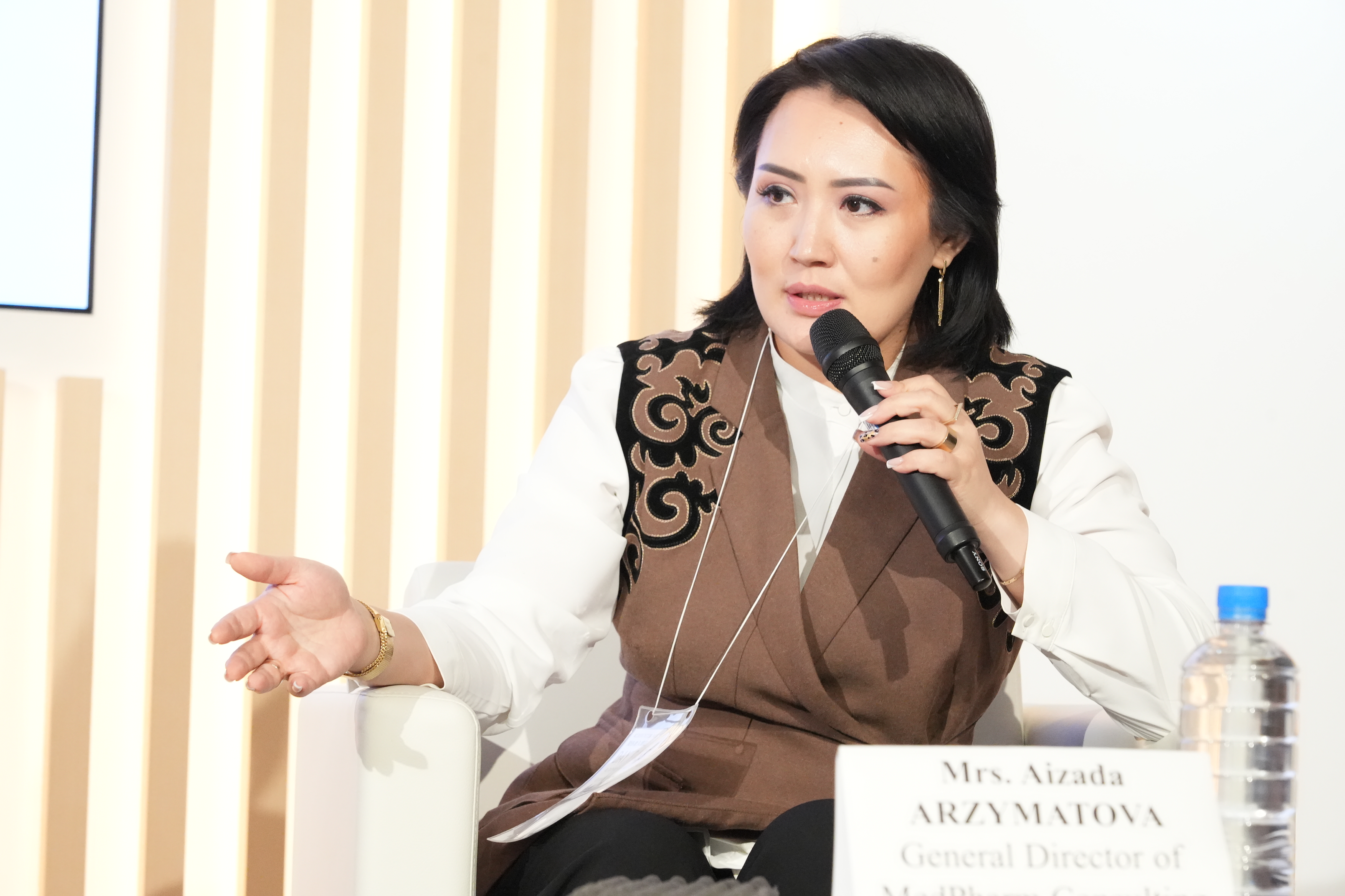 Ms. Kanako Ono, from Dr. Recella Group, explored the intersection of beauty, health, and environmental sustainability, linking responsible corporate strategy with human well-being. Ms. Aizada Arzymatova, CEO of MedPharm Consulting, addressed the economic and policy aspects, emphasizing investment opportunities in Kyrgyzstan’s pharmaceutical sector and the vital role of private–public partnerships for sustainable growth.