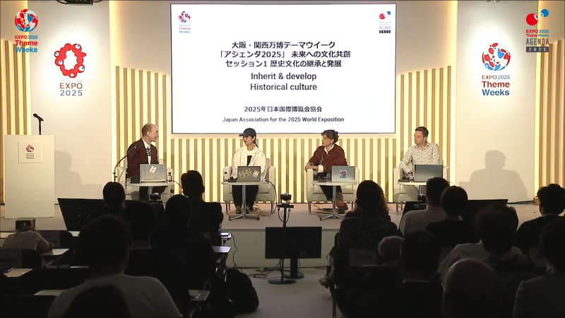 2025年大阪・関西万博「テーマウィーク」において開催されたセッション「歴史文化の継承と発展」では、戦争、災害、暴力などによって文化や社会が深く傷つけられる現代において、それでもなお芸術表現が持つ再生と連帯の力について多角的に議論された。本セッションには、文学者でありメディアテーク館長のロバート・キャンベル氏をモデレーターとして、イスラエル、ウクライナ、日本など各国からアーティストが登壇。彼らはそれぞれの活動を通じて、破壊と再構築、記憶と想像、文化資源の意味と役割について語った。