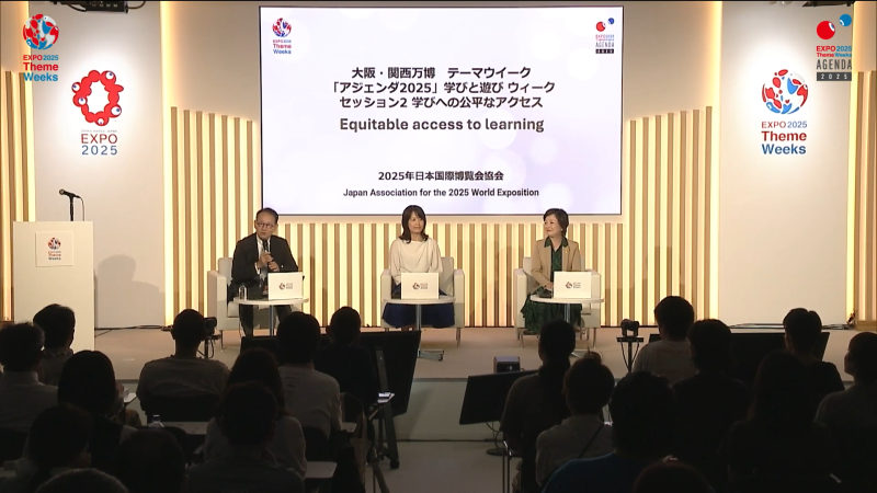 本プログラムは、テーマウィーク全体協賛者と連携して博覧会協会が企画・実施する「アジェンダ2025」の一つです。「全ての人が公平な学びの機会を得るために何ができるか」というセントラルクエスチョンを中心に、トークセッションが展開されます。