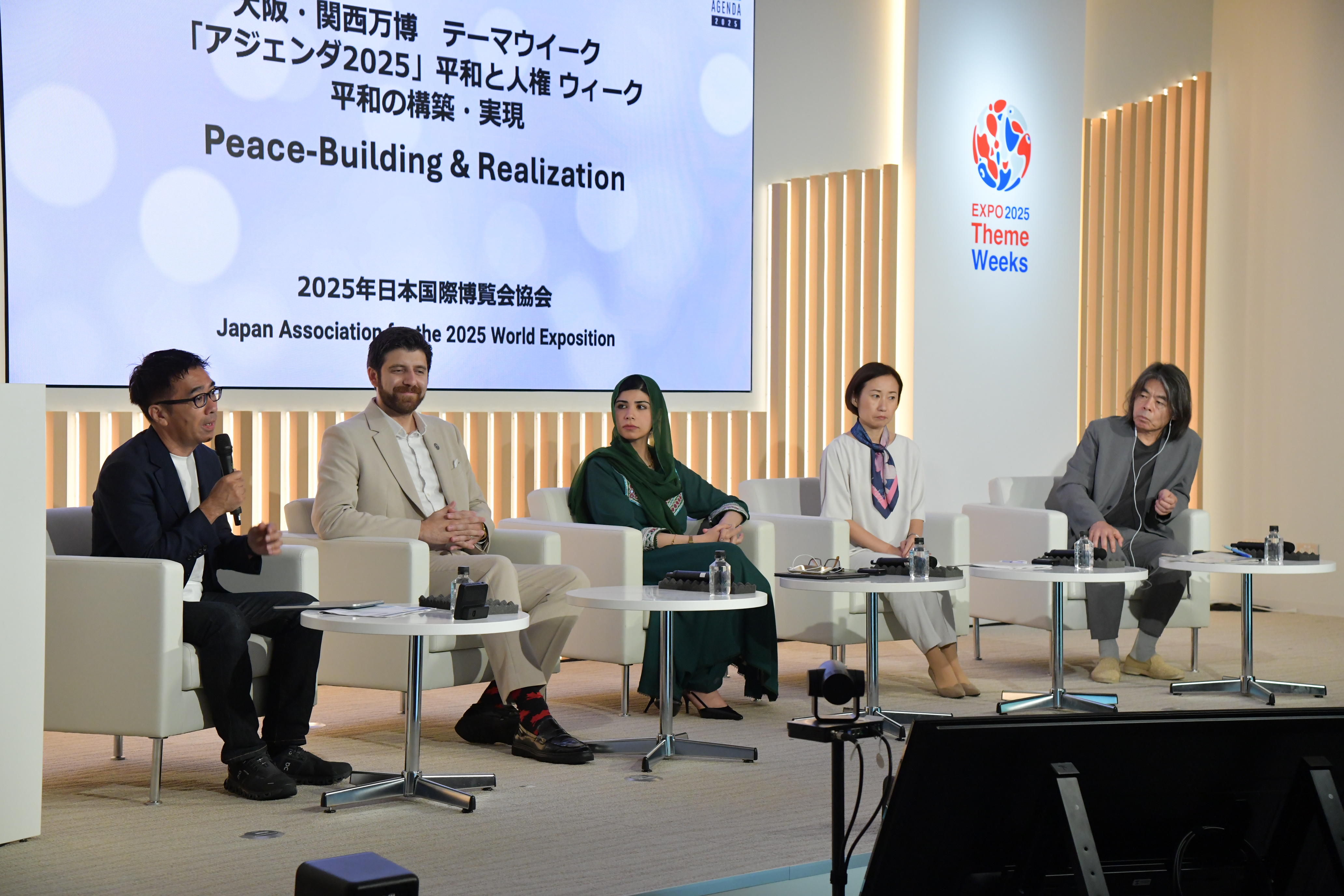 本プログラム「平和の構築・実現」は、大阪・関西万博「平和と人権ウィーク」において、開催されたセッションである。本セッションでは、国際社会が直面する対立や分断を超えて平和を実現するために、どのような視点や行動が必要であるのかを議論した。登壇者には紛争体験を持つ企業家、教育活動家、国際協力機関の専門家、そして芸術を通じて平和を探求する大学学長が集い、それぞれの実践や思想を踏まえた深い議論が展開された。セッション全体を通じて、平和とは単なる戦争の不在ではなく、人間の尊厳、信頼、共感を基盤とした日常の実践であることが強調された。
