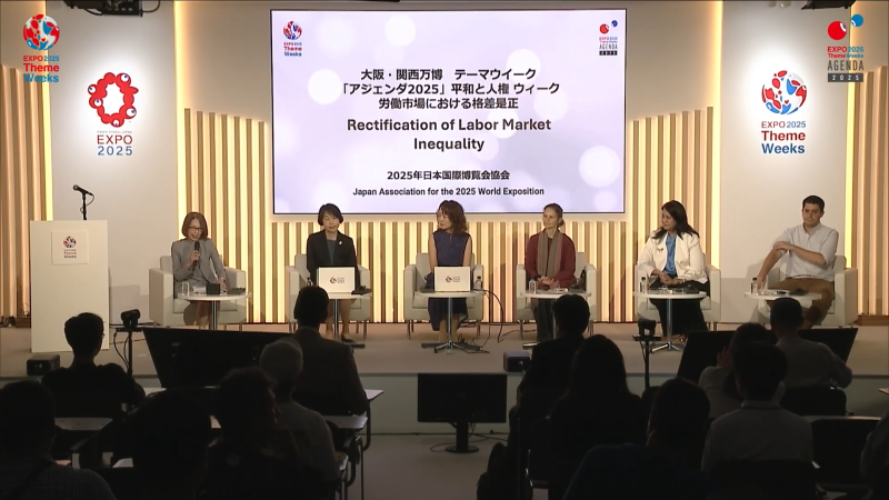 本プログラムは、テーマウィーク全体協賛者と連携して博覧会協会が企画・実施する「アジェンダ2025」の一つです。「あらゆる職場でInequityを解消し、異なる属性の人々が平等な機会を得て、健全な企業の成長を実現するためにはどのような (企業・行政の) 施策が必要か」というセントラルクエスチョンを中心に、トークセッションが展開されます。