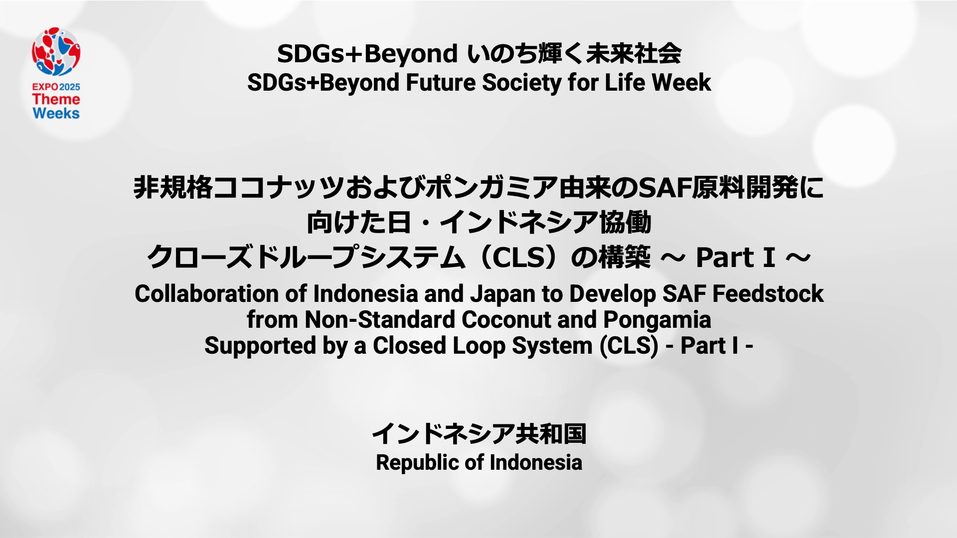 非規格ココナッツおよびポンガミア由来のSAF原料開発に向けた日・インドネシア協働 ― クローズドループシステム(CLS)の構築 ~ Part I ~