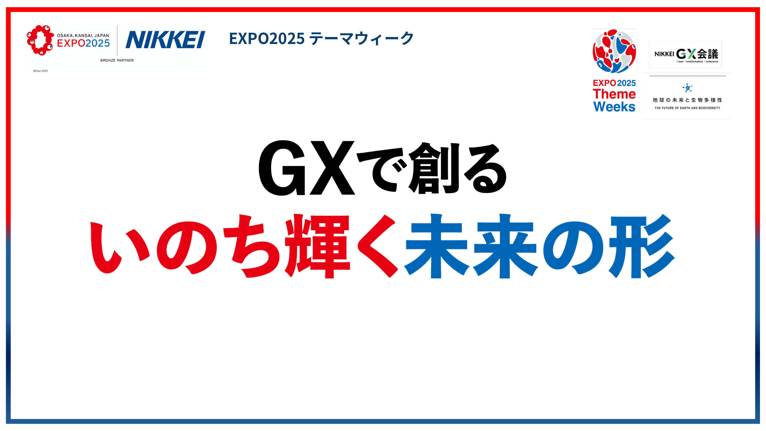 「NIKKEI GX会議」は、温室効果ガス排出削減を成長機会につなげるグリーントランスフォーメーション(GX)に先進的に取り組む企業と有識者、政府関係者らが集うプロジェクトです。刻々と変わる社会情勢やトレンドを学びあい、GXを推進するために議論を重ね、その内容を広く発信していきます。今回、万博で「GXで創るいのち輝く未来の形」をテーマにハイブリッド形式の特別セミナーを実施します。