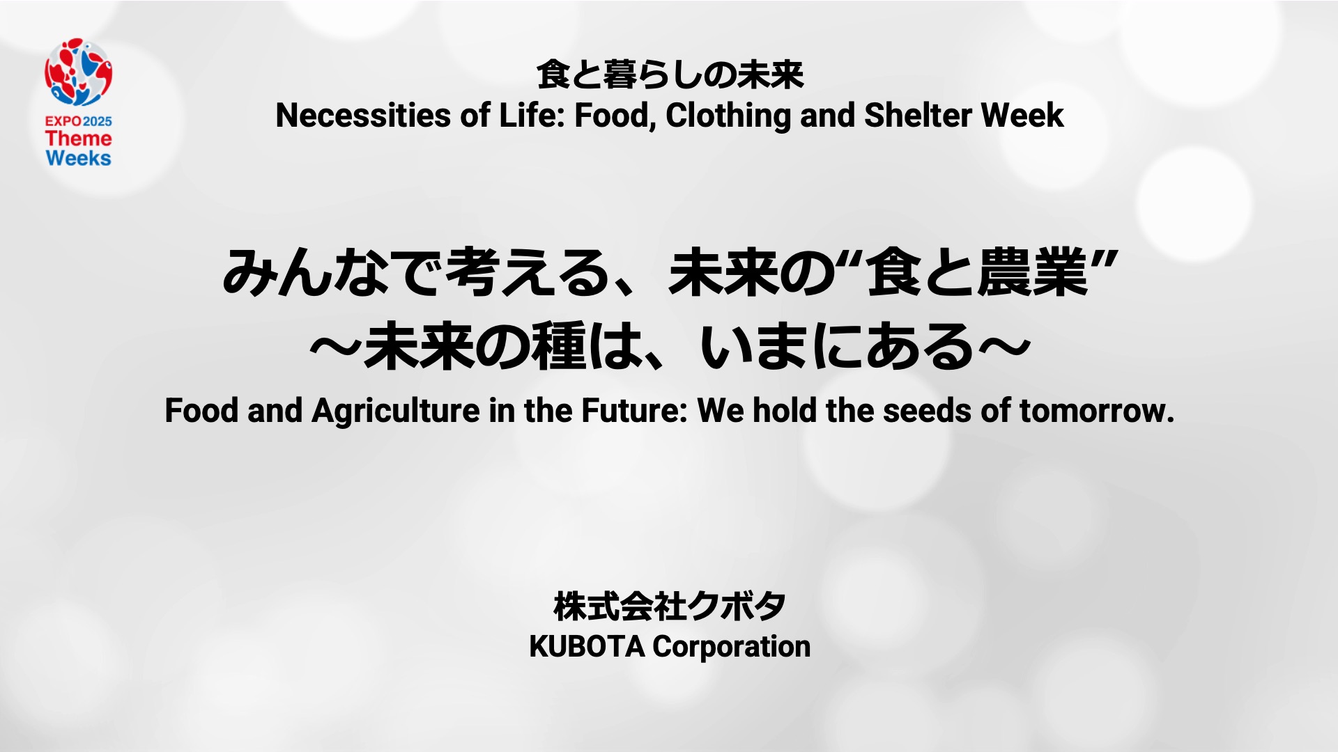 「未来の種は、いまにある」というコンセプトのもとで、万博会場内の未来の都市パビリオンは当然のことながら、会期中に他の協賛者と連携しながらイベント実施予定。また、クボタの制作するCMや、オウンドメディア、出前授業など、いろいろな場面で、未来の食と農業につながる活動を展開予定です。