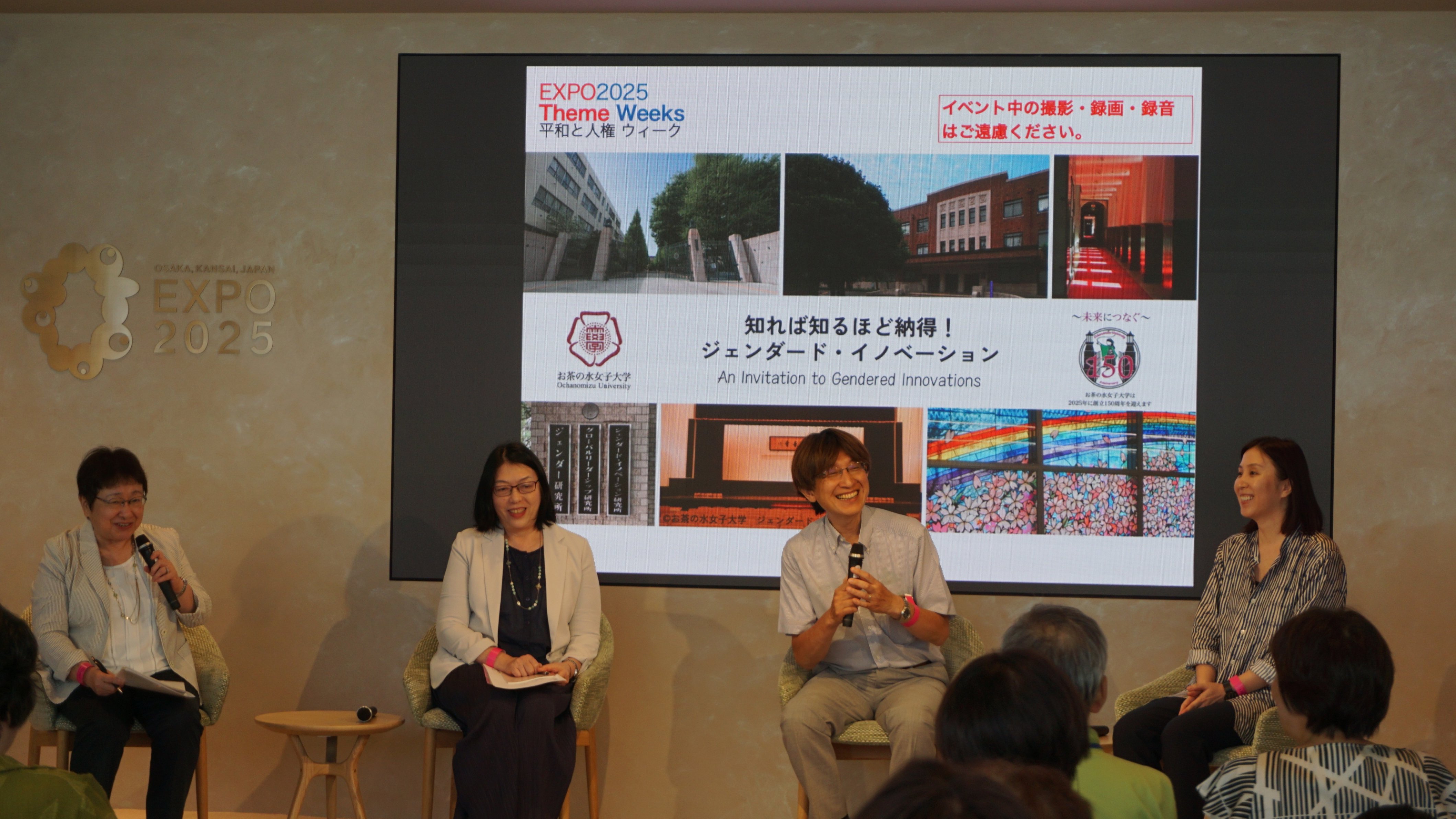 8月4日(月)、ウーマンズ パビリオン「WA」スペースにて「知れば知るほど納得!ジェンダード・イノベーション」を開催しました。一般の参加者50名に加え、お茶の水女子大学の学生20名と教職員13名の合計83名が会場に集い、笑いや驚きの声もあがる賑やかな120分となりました。