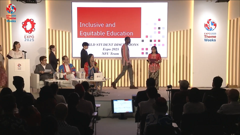 8月7日(木)、大阪・関西万博のテーマウィークスタジオにて「World Student Discussions」を実施しました。本イベントは立命館大学と日本福祉大学が中心となって毎年開催している「World Youth Meeting」という英語による国際的なスピーチコンテストの一環として実施されたもので、 25年目という節目を迎える今年、特別企画として万博会場にて EXPO 2025 Special 「World Student Discussions」として行いました。