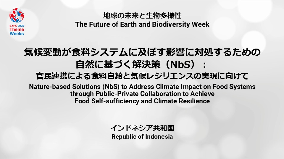 本ビジネスフォーラムでは、インドネシアの食料システムが直面する気候変動の課題に対して、自然の力を活用した解決策(自然ベースソリューション:Nature-based Solutions、NbS)の具体的な取り組みと、政府・民間・学術機関による協働の重要性が共有されました。