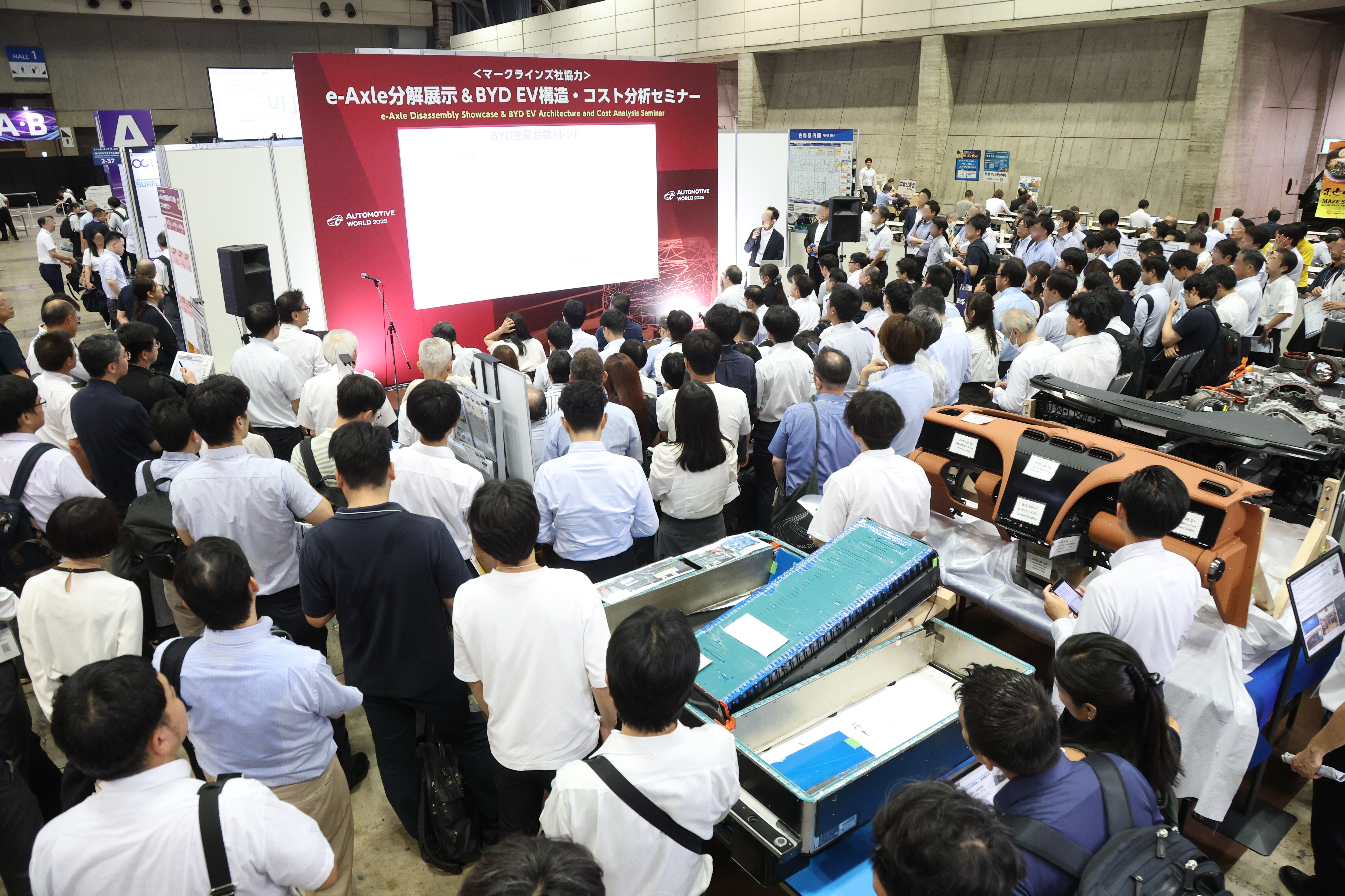 さらに、マークラインズ株式会社の協力により開催された「BYD EV構造・コスト分析セミナー」では、中国EVメーカー・BYDの最新車両に搭載されているe-Axle(電動アクスル)に焦点を当てた講演が行われました。