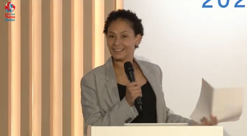 18:00 から、ハイチパビリオンディレクターによる公式歓迎の挨拶があり、来場者を歓迎するとともに、この日のテーマが示されます。その後、ハイチパビリオン総代表がテーマと、その意義について概要を説明します。