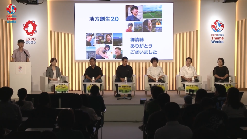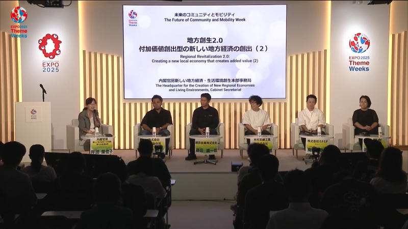 本プログラムでは、「地方創生2.0」の事例として、大阪府八尾市の地域企業による輸出、海外展開を取り上げ、地域産品の高付加価値化による稼げる地方経済の実現について討論しました。地域企業の産品等が海外でも通用するよう、様々なアイデアにより魅力を高め、高付加価値化する取組みへは、国内外を問わず多くに人々が関心を寄せており、会場は満席となりました。