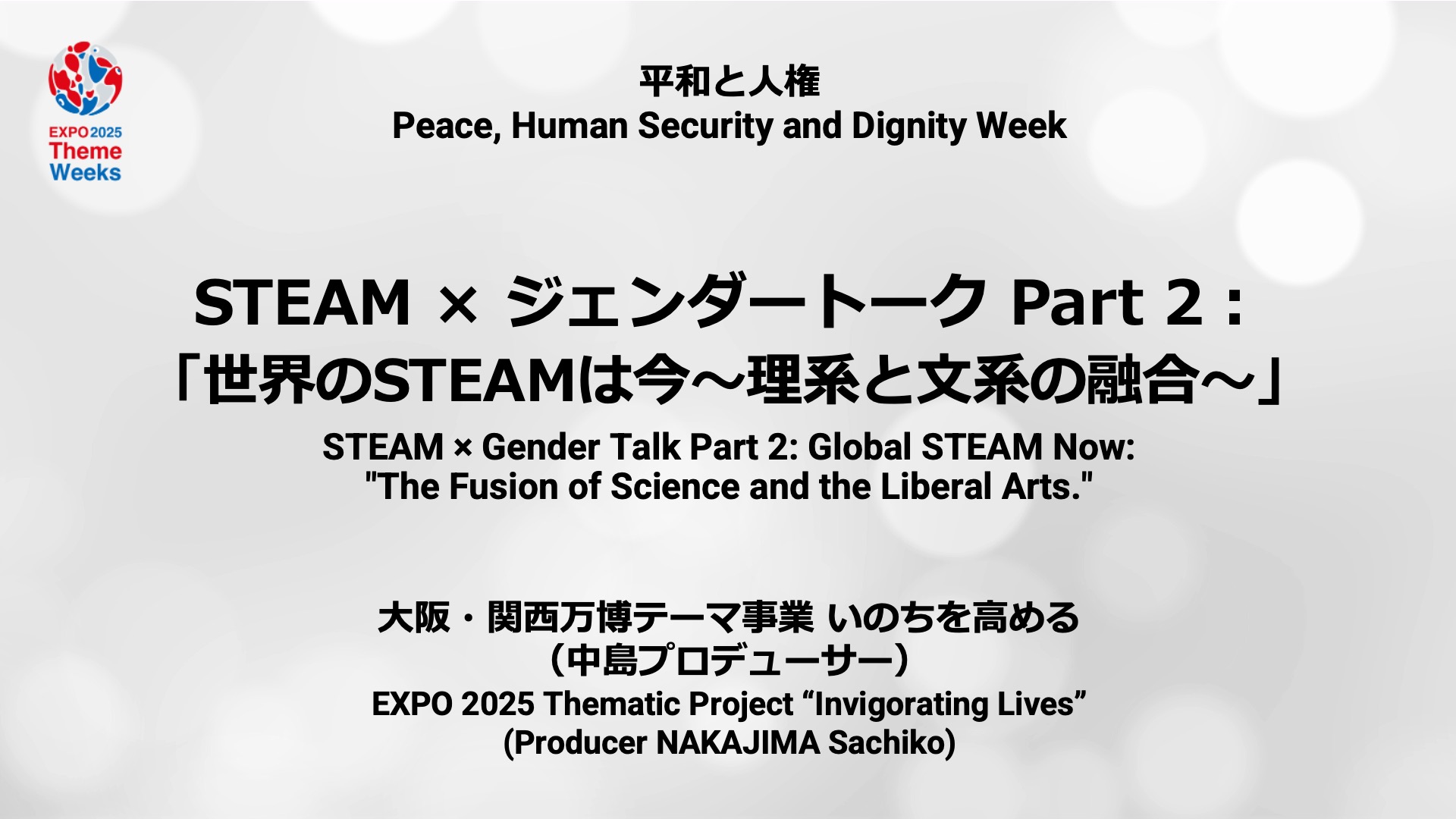 中島は「STEAMの根底には“いのちを高める”という人間の本質的・創造的な衝動がある」と。科学と芸術、個と社会、異文化と未来をつなぐ新たな共創への希望を語りました。ジェンダー平等、女性活躍、人間の安全保障、そして文化の対話——万博が掲げる理念が、まさにSTEAMの実践を通して形となった瞬間でした。