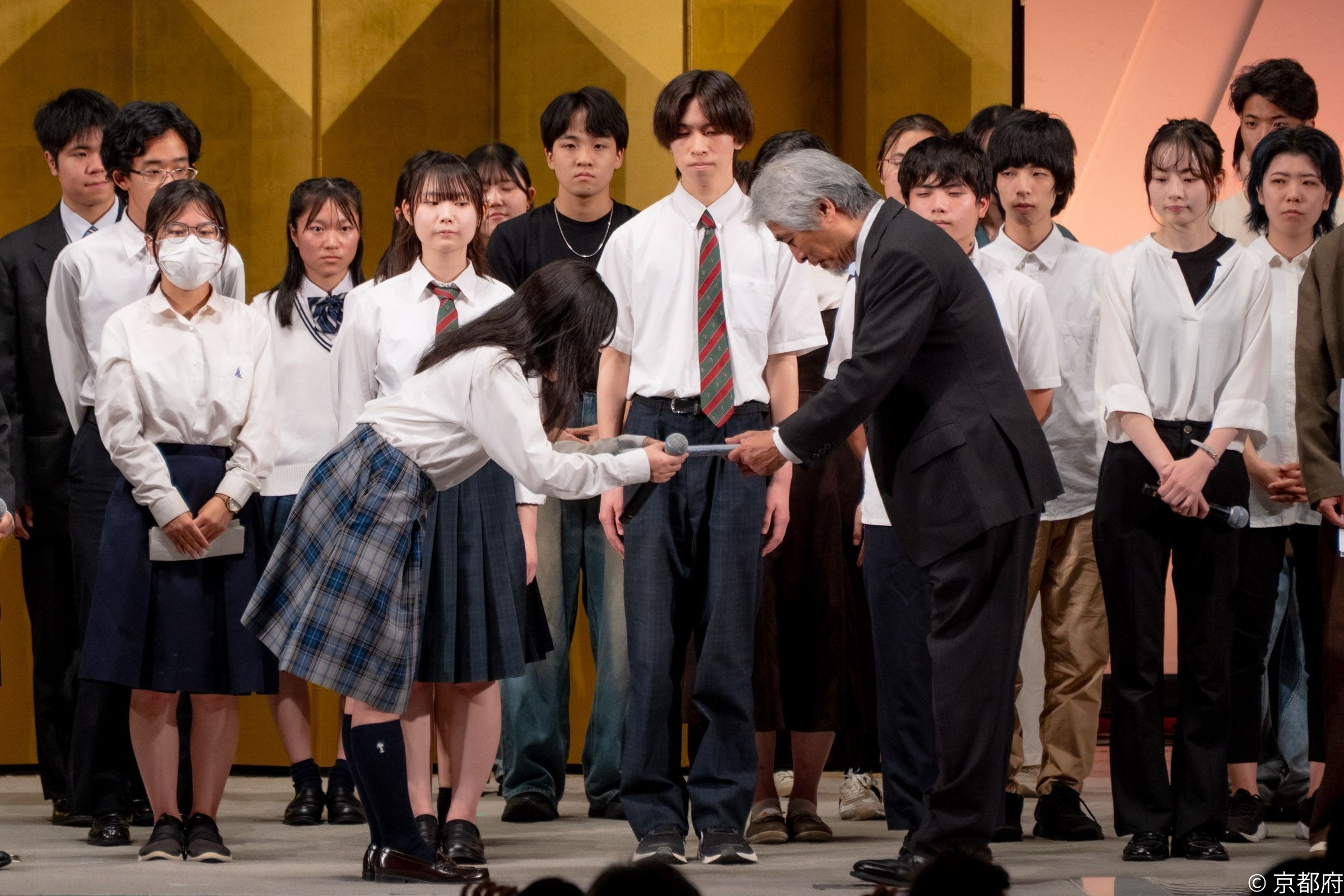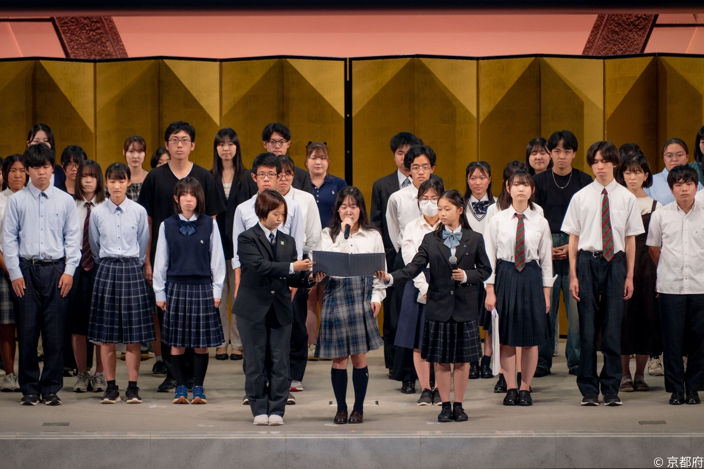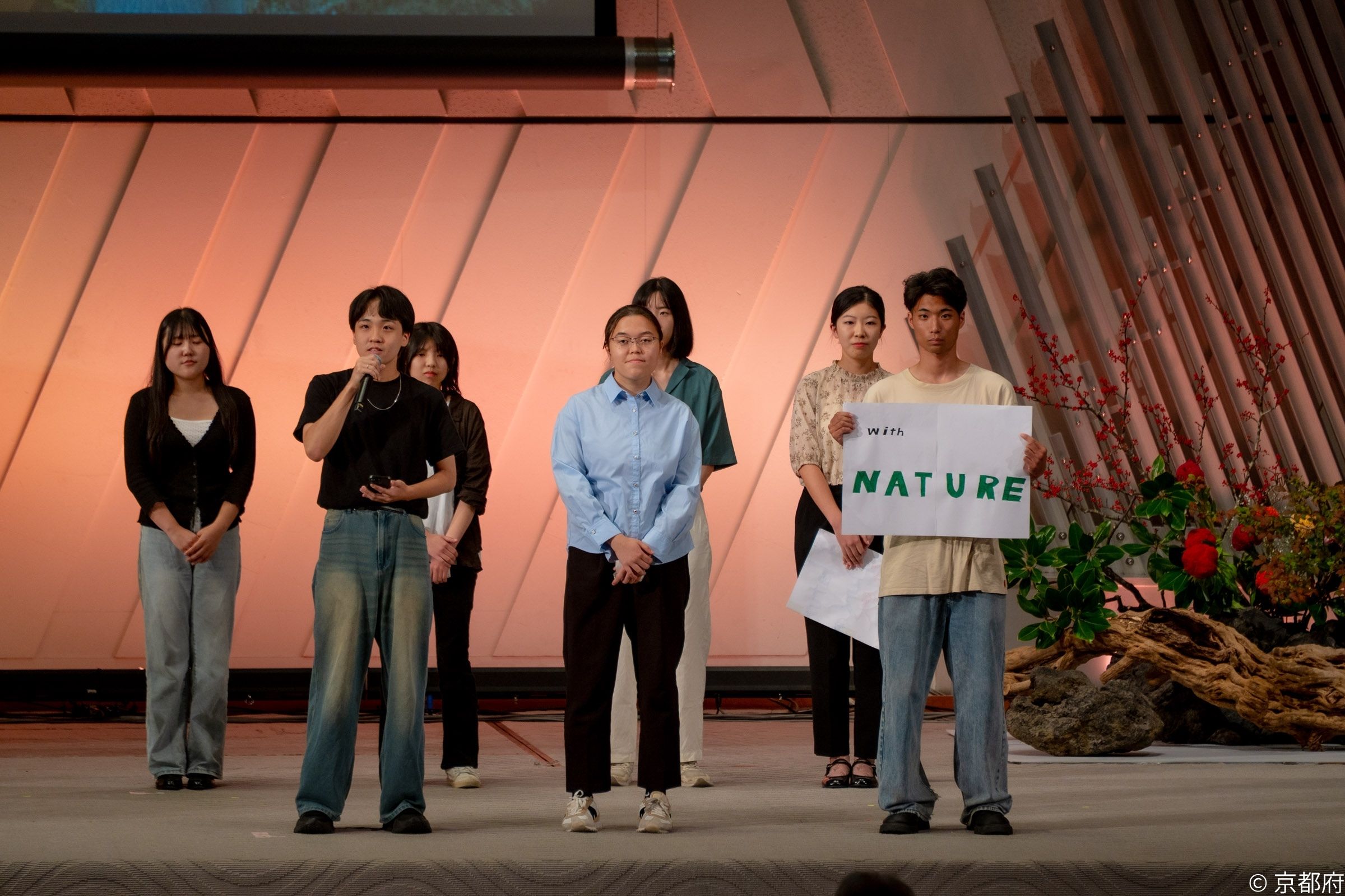 続いて、未来会議として今年の5月から8月の間、自然環境と京都文化との関係性について探究をしてきた国内外の高校生・大学生総勢106名のうち64名が登壇し、探究活動から得た学びや気づきをもとに、「未来への宣言」を発表しました。