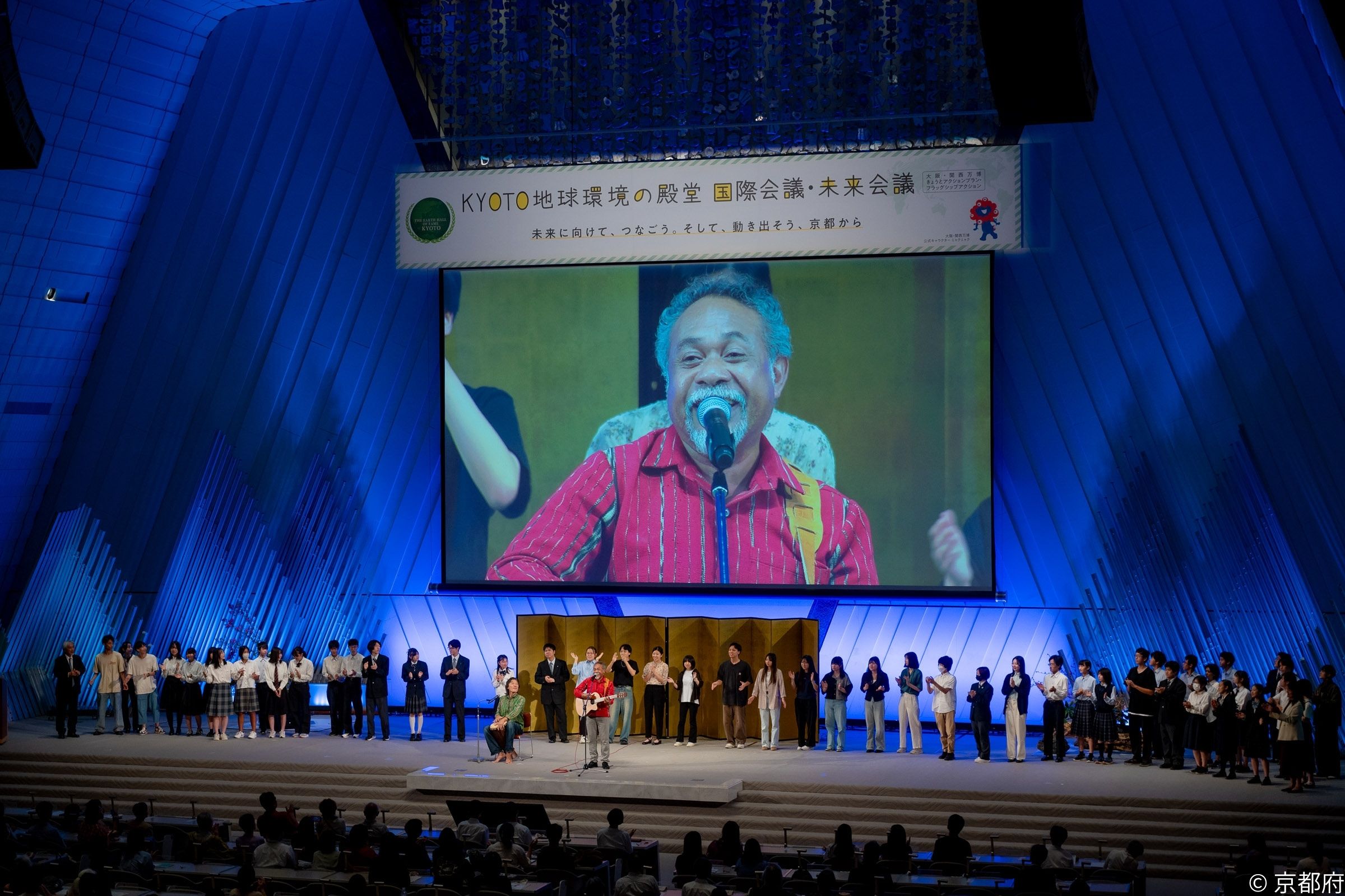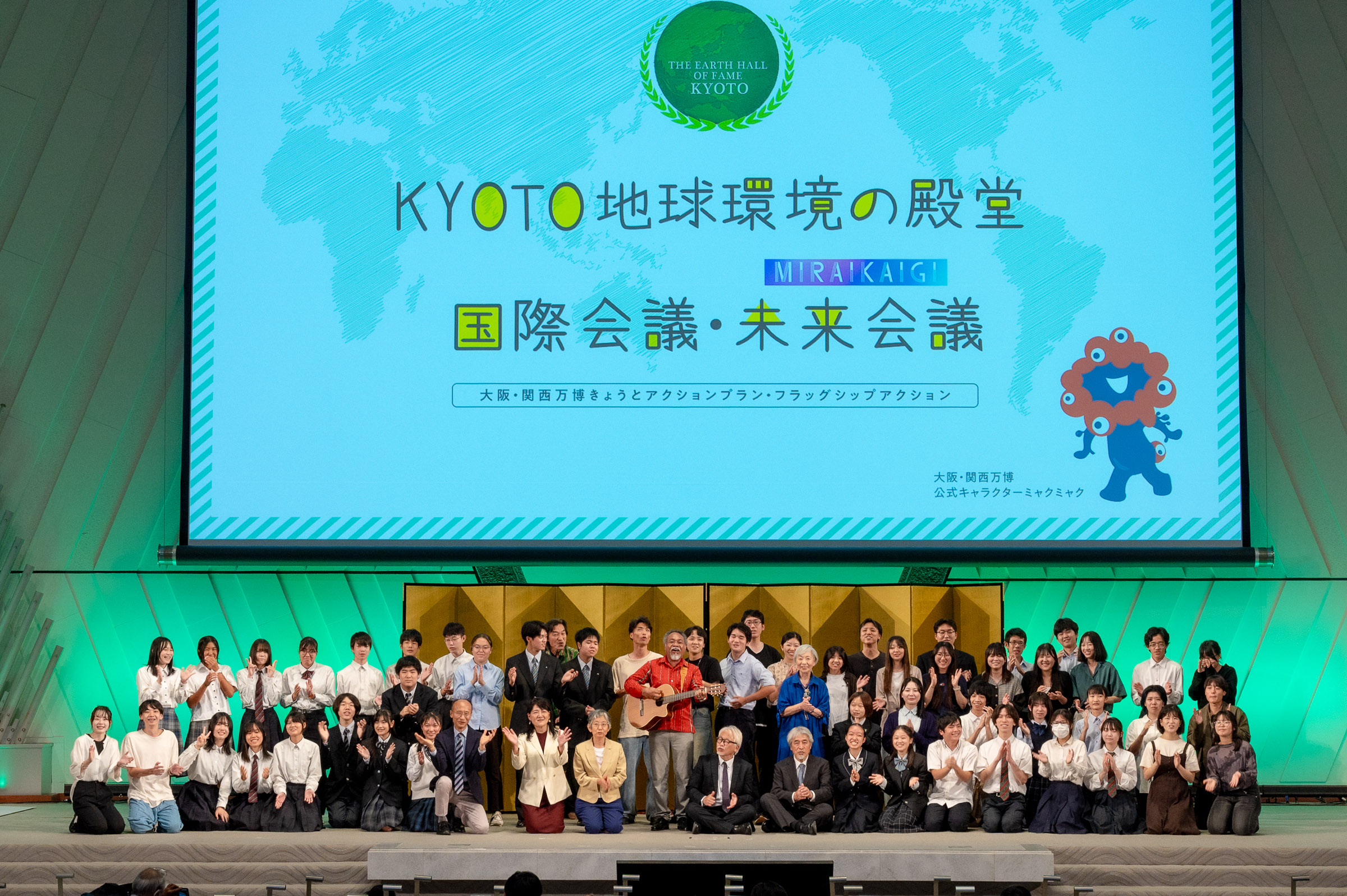 京都議定書発効20周年を記念し、大阪・関西万博のテーマ「いのち輝く未来社会のデザイン」のもと、未来会議において自然環境と京都文化との関係について探究してきた若者より、世界に向けて「未来への宣言」を行うとともに、歴代の殿堂入り者と若者等が「気候変動」や「生物・文化多様性」のテーマで議論等を行う「KYOTO地球環境の殿堂」国際会議・未来会議を開催しました。