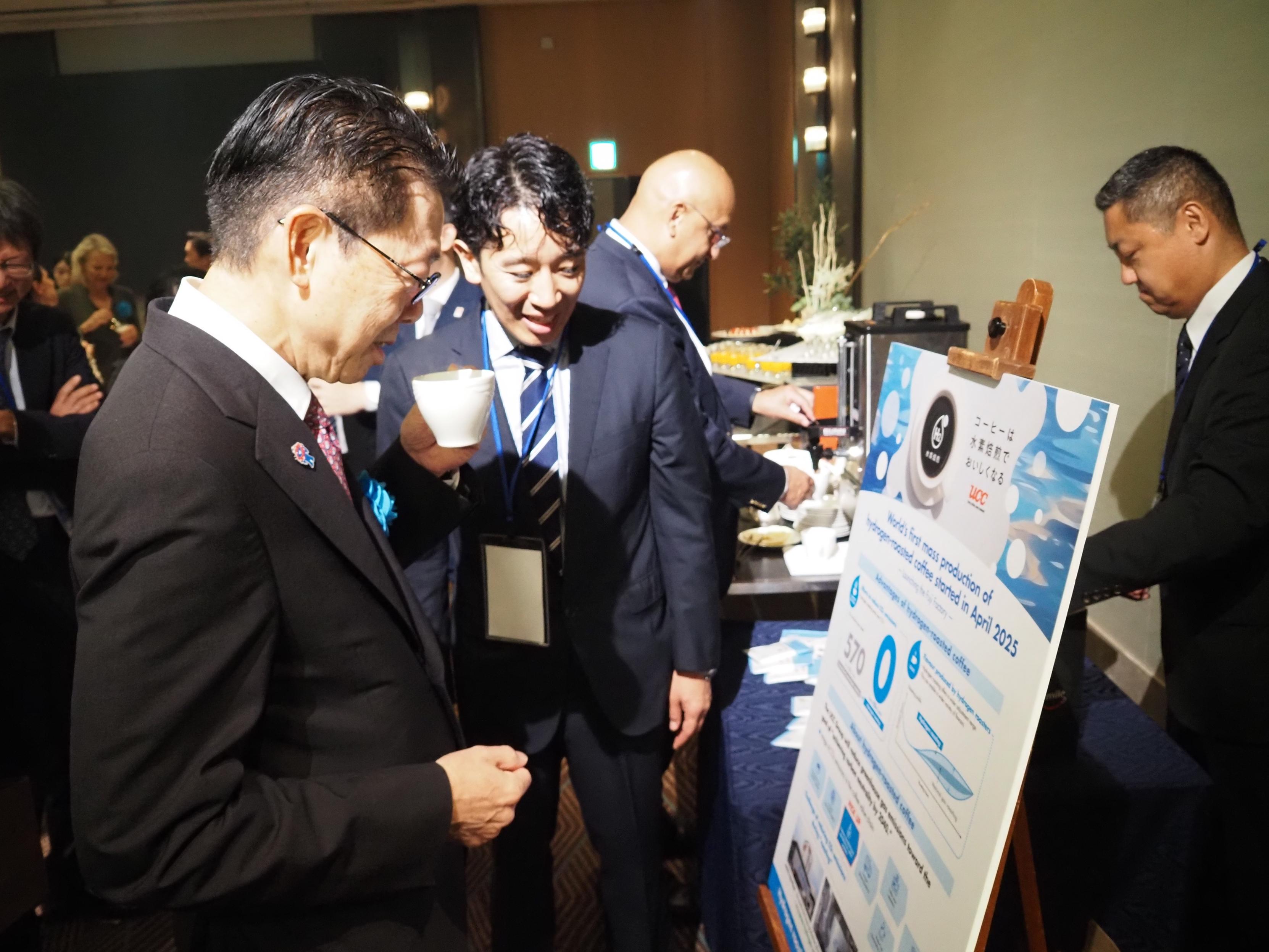 また、ランチでは、「おいしい」水素社会を身近に感じていただけるように水素で調理した鶏肉や水素で焙煎したコーヒーを提供したとともに、企業によるフレックス燃料ハイブリッド車や水素バイク、その他持続可能燃料や水素・アンモニアに関するパネル展示を行い、持続可能燃料や水素・アンモニアの活用・社会実装に向けたPRを実施いたしました。