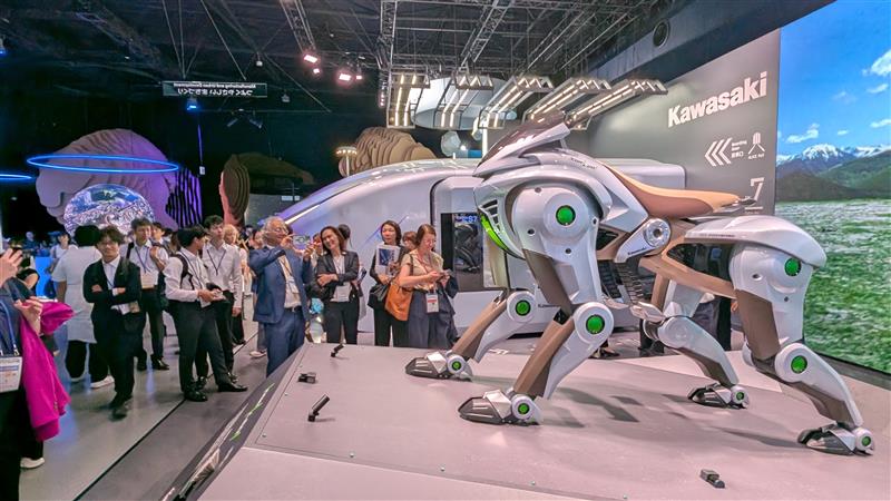 ④「未来の都市」パビリオンにて、水素を燃料としたオフロードパーソナルモビリティ「コルレオ」や、海上での帆船の推進力により発電し、船内でグリーン水素を創る次世代水素生産船「ウインドハンター」等の視察