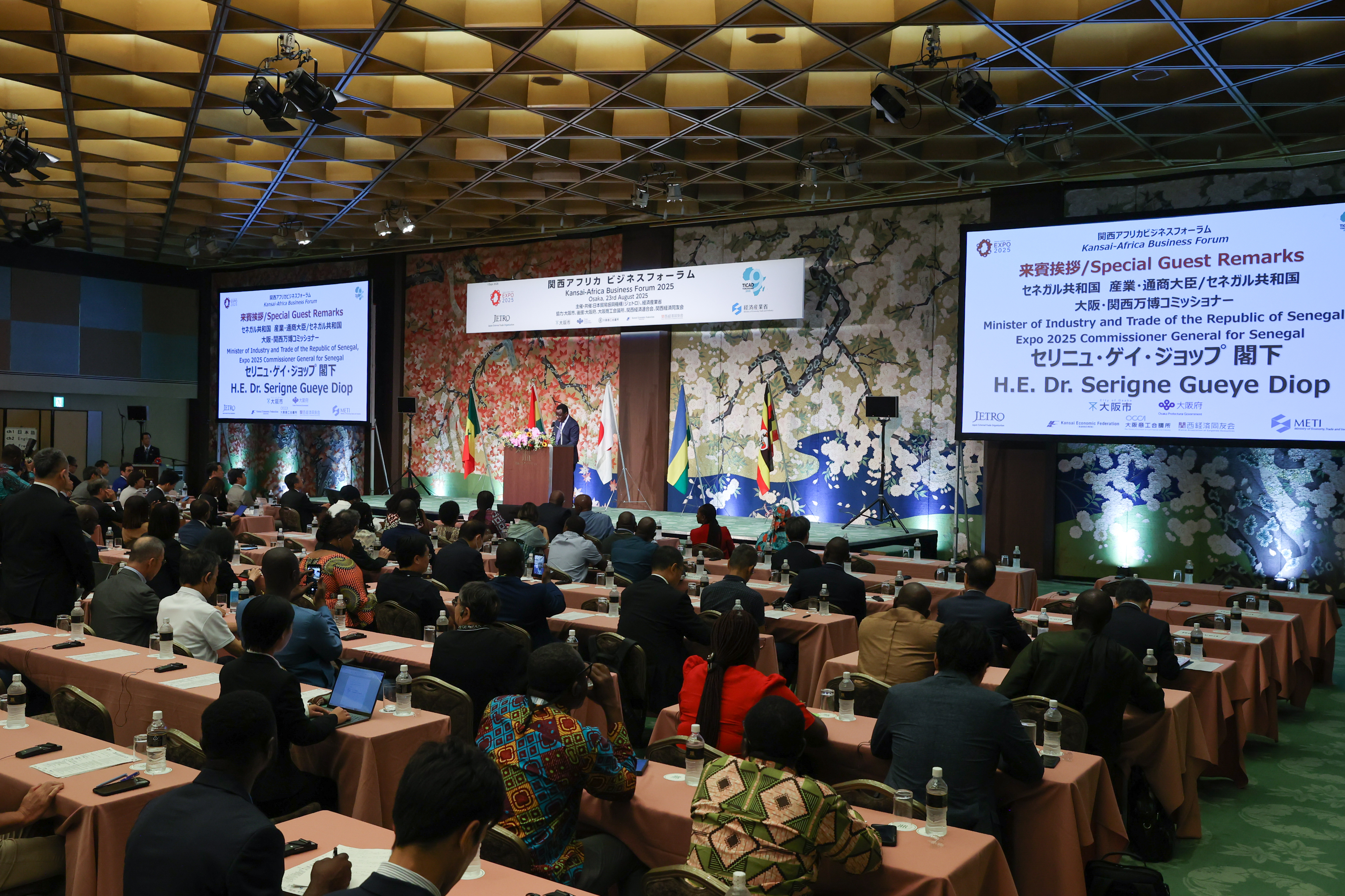ジェトロは、経済産業省との共催で「関西アフリカビジネスフォーラム」を大阪で開催しました。第9回アフリカ開発会議(TICAD9)および大阪・関西万博の開催を契機に、関西とアフリカ諸国との経済連携の深化を目指したもので、ガーナ、セネガル、ルワンダ、ウガンダの閣僚のほか、日アフリカの官民から合計174人が参加しました。